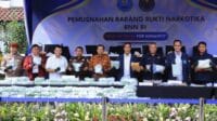 Jakarta-Koranlibasnews.com Badan Narkotika Nasional Republik Indonesia (BNN RI) menggelar pemusnahan barang bukti hasil tindak pidana narkotika di Lapangan Parkir BNN dan PT. Jasa Medivest, Karawang, Rabu (18/2) pada pukul 14.00 WIB. Barang bukti yang