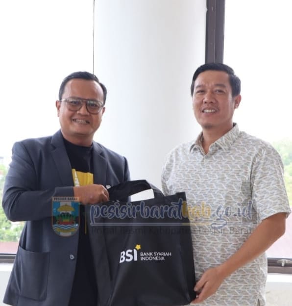 Bupati Pesisir Barat, Dedi Irawan menerima secara langsung audiensi dari jajaran manajemen Bank Syariah Indonesia (BSI) Kantor Cabang (KC) Liwa, di ruang kerja Bupati lantai 5 Gedung Marga Sai Batin Komplek Perkantoran Pemkab Pesibar, Jumat (23/1/2026).