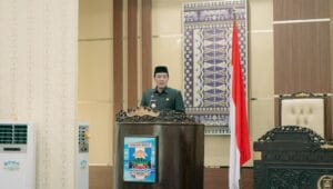 Bupati Pesisir Barat, Dedi Irawan, menyampaikan Laporan Keterangan Pertanggungjawaban (LKPJ) Tahun Anggaran 2025 dalam Rapat Paripurna DPRD Kabupaten Pesisir Barat yang digelar di ruang rapat paripurna DPRD Pesibar, Selasa (07/04/2026).