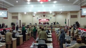 TULANG BAWANG-koranlibasnews.com DPRD Kabupaten Tulang Bawang melalsanakan rapat istimewa dalam rangka memperingati HUT ke-25 sekaligus memperingati HUT ke-58 Provinsi Lampung, di gedung DPRD Tulang Bawang, Minggu, 20 Maret 2022.