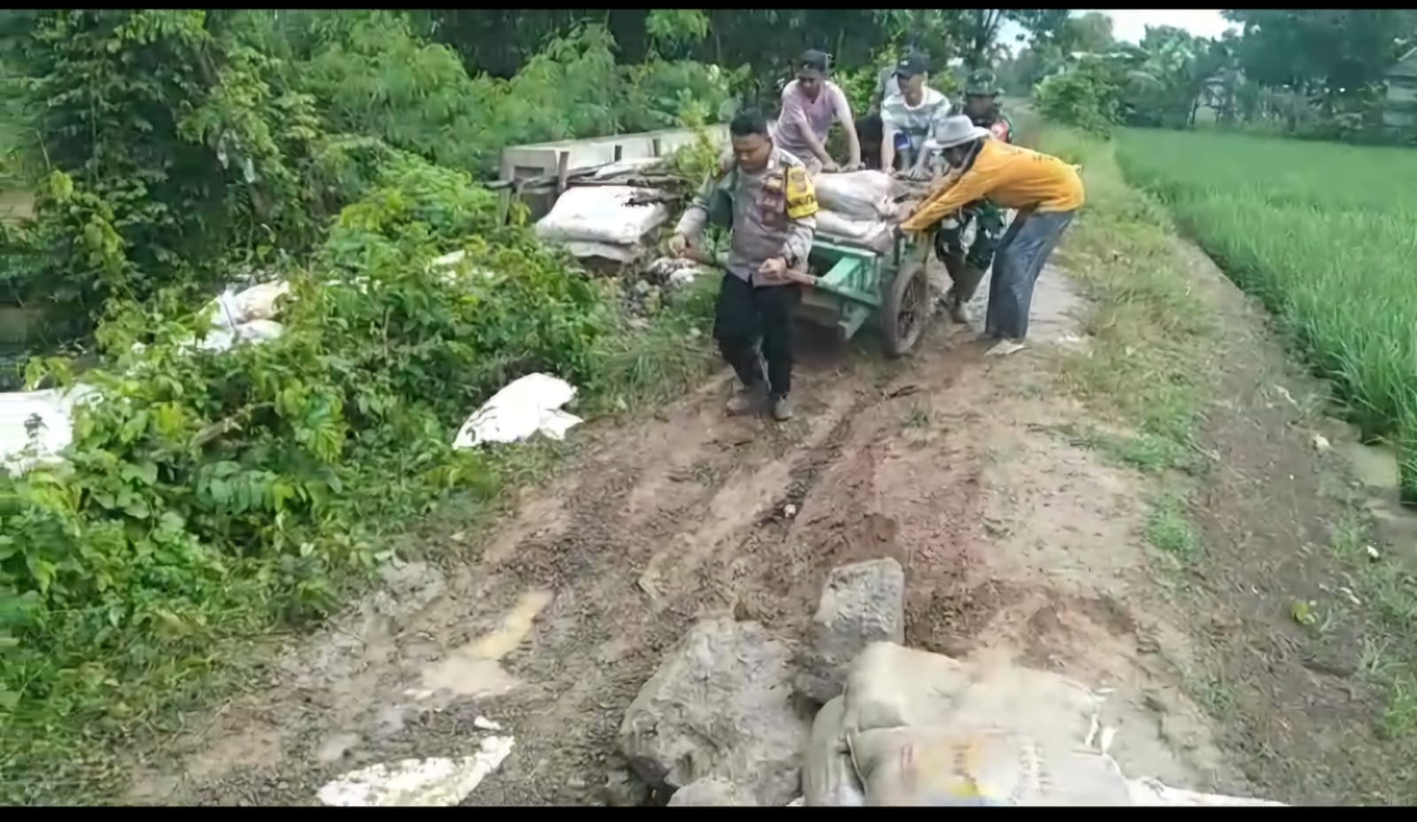 Subang -koranlibasnews.com Bhabinkamtibmas dan Babinsa di Desa Muara Kecamatan Blanakan Kabupaten Subang berjibaku gotong royong memperbaiki tanggul pinggiran kali guna meninggikan bahu jalan yang merupakan akses jalan warga yang hendak ke sawah ,Sabtu 08/02/2025.
