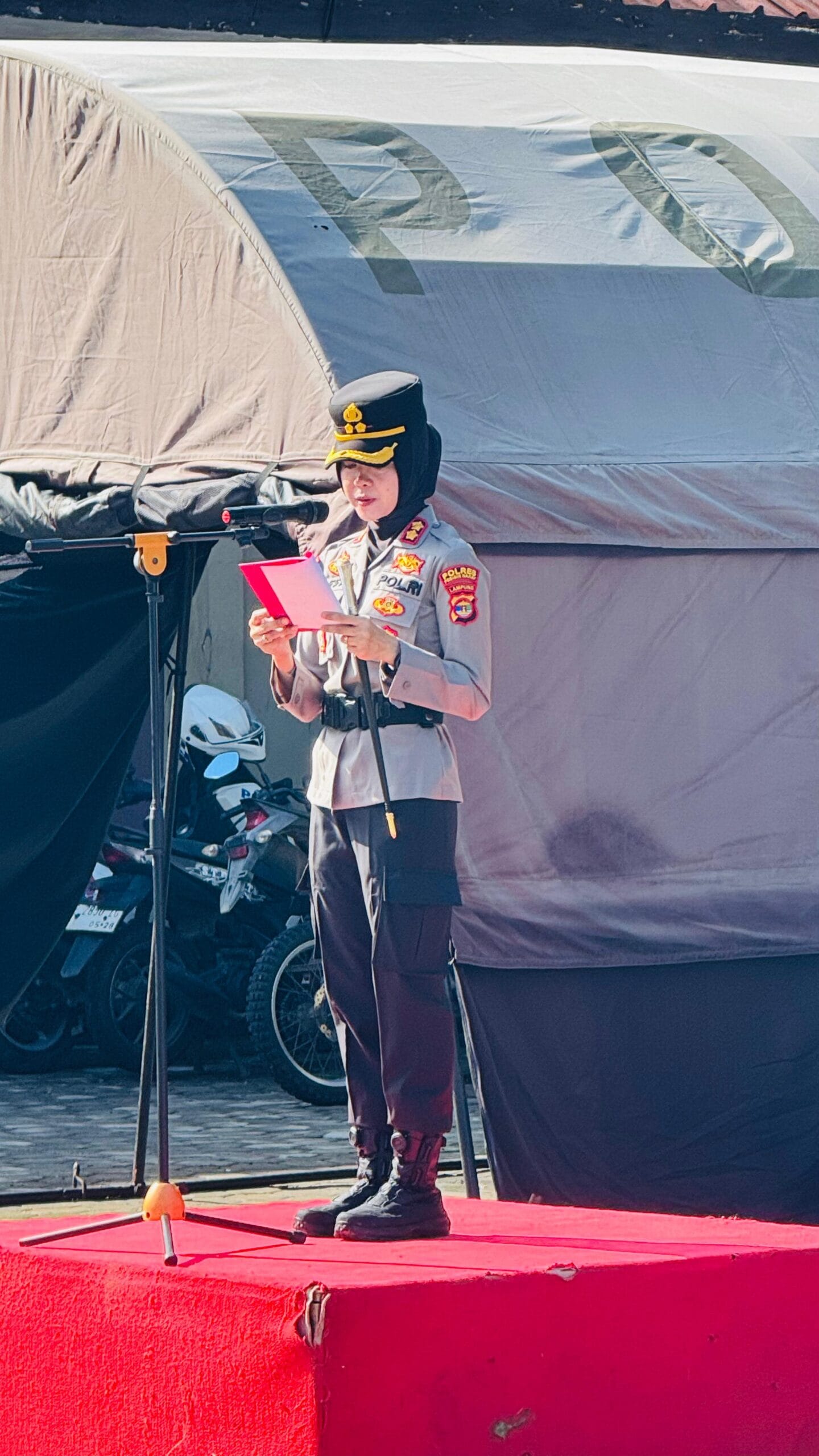 Kapolres Pesisir Barat AKBP Bestiana, S.I.K., M.M. memimpin Apel Gelar Pasukan Operasi Ketupat Krakatau 2026 yang dilaksanakan di Lapangan Mapolres Pesisir Barat, pada Kamis (12/3/2026).