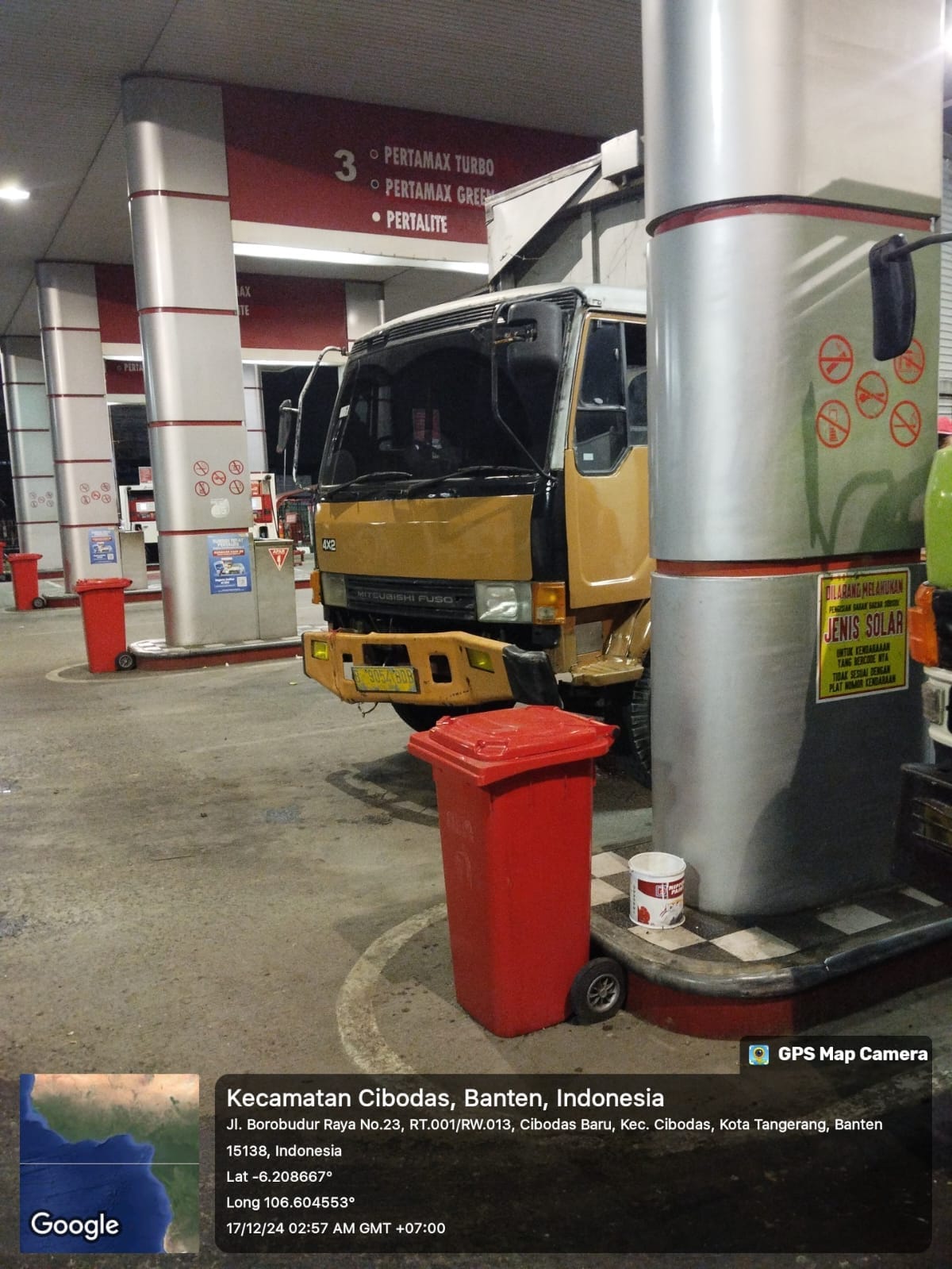 Amatan di salah satu area Jl Raya Gatot Subroto SPBU Jatiuwung, Selasa (17/12/24) pukul 03:00 dini hari Wib, terlihat mobil Truck Fuso yang sudah berbaris antri akan melakukan pengisian BBM Solar.