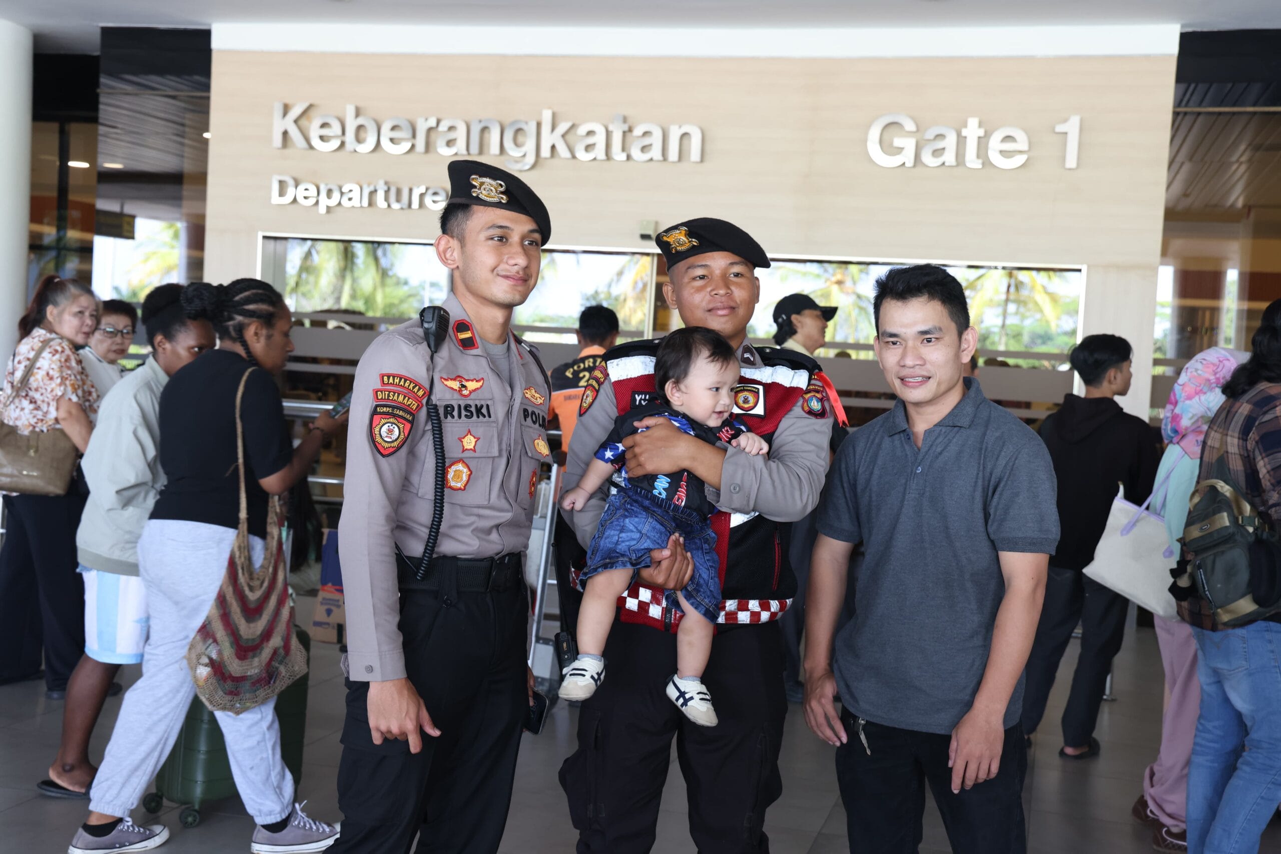 Selain itu, petugas turut mengingatkan para penumpang untuk tetap menjaga ketertiban dan mengikuti alur pelayanan bandara agar tidak terjadi penumpukan penumpang di area keberangkatan.
