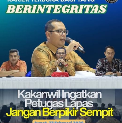 Dalam arahannya, Kakanwil menekankan bahwa integritas merupakan pondasi utama dalam pelaksanaan tugas Pemasyarakatan. Ia mengingatkan agar tidak ada lagi pelanggaran, khususnya pelanggaran berat (peltati), yang dapat mencoreng nama baik institusi.