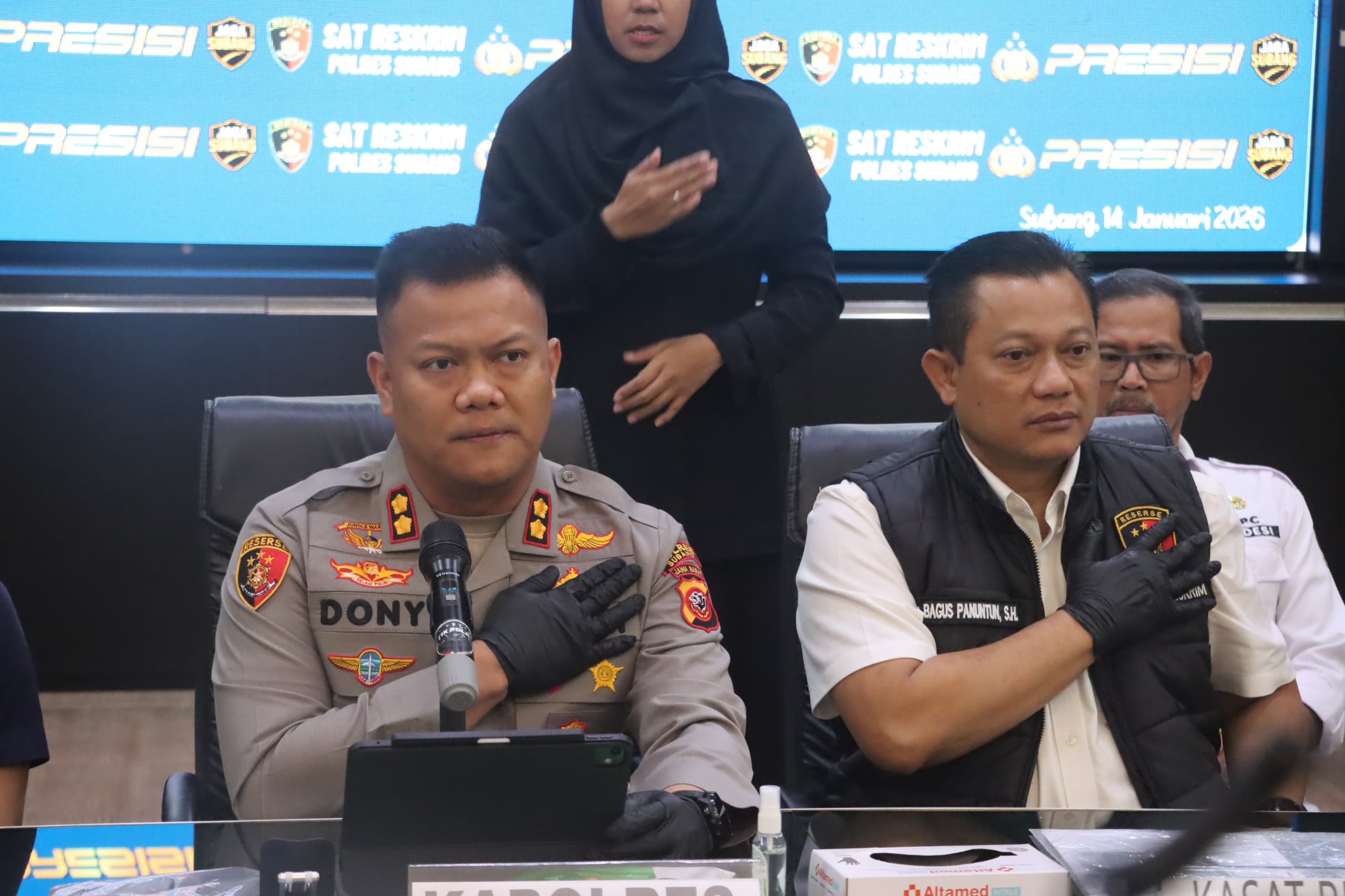 Pengungkapan kasus tersebut disampaikan secara resmi dalam kegiatan Press Release yang dipimpin langsung oleh Kapolres Subang AKBP Dony Eko Wicaksono, S.H., S.I.K., M.H., Ph.D., bertempat di Aula Patriatama Polres Subang, Kamis (15/1/2026) sore.