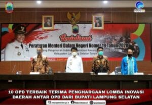 Pemerintah Kabupaten (Pemkab) Lampung Selatan memberikan apresiasi sekaligus penghargaan kepada 10 Organisasi Perangkat Daerah (OPD) yang berprestasi dalam Lomba Inovasi Daerah Kabupaten Lampung Selatan Tahun 2021