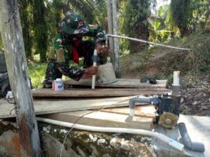 Meski sibuk kerja di sasaran fisik TMMD, para anggota Satgas TMMD Reguler ke-111 Kodim 0420/Sarko di Desa Bukit Beringin, Peltu Kartam, salah satu Anggota Personil Satgas TMMD memperbaiki pipa mesin penyedot air Mandi,Cuci, Kakus (MCK) Umum yang sudah rusak di makan usia di Dusun 4 Desa Bukit Beringin,Kecamatan Bangko Barat, Kabupaten Merangin, Selasa(29/06/2021)