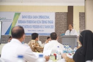 Tebing tinggi-Koranlibasnews.com Walikota Tebing Tinggi Ir. H. Umar Zunaidi Hasibuan, M.M. menggelar Rapat Evaluasi Pengendalian Covid-19 Sekaligus Mengantisipasi Mudik Lebaran Tahun 2021 di kota Tebing Tinggi, Senin (19/4/2021) di Aula Balai Kota.