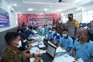 Kapolres Tebing Tinggi AKBP AGUS SUGIYARSO,S.IK didampingi Kabag Ops Kompol B.Siahaan,S.H. melakukan pengecekan terhadap pelaksanaan kegiatan Vaksinasi Merdeka Polres Tebing Tinggi Secara Serentak Kepada Warga Binaan Lapas Kelas II-B Tebing Tinggi.
