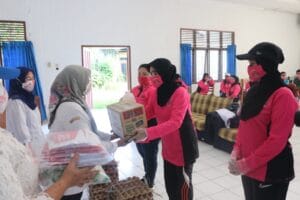 Kapolres Tebing Tinggi AKBP AGUS SUGIYARSO,S.IK Didampingi Ketua Bhayangkari Cabang Tebing Tinggi Ny. Echi Agus Sugiyarso Memberikan Bantuan Sosial Kepada Pengemudi Becak.